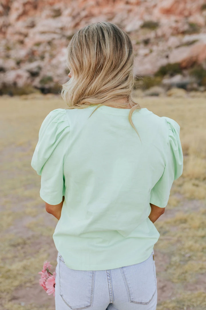 The puff sleeve and bright mint color are all the vibes! Add a fun element to any outfit with this super cute basic top! You can pair this with almost anything in your closet for a quick and adorable outfit!