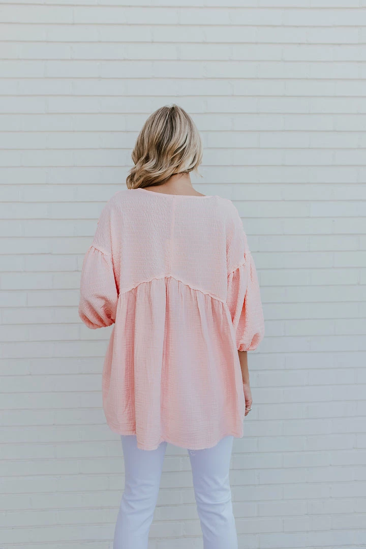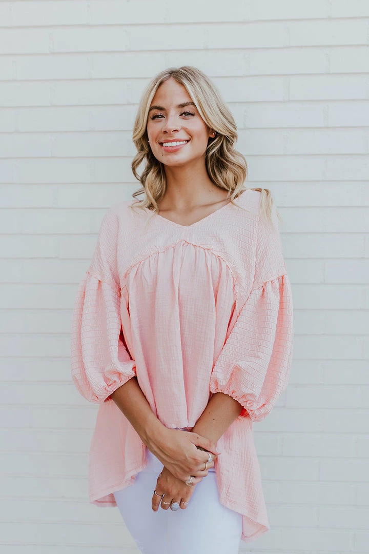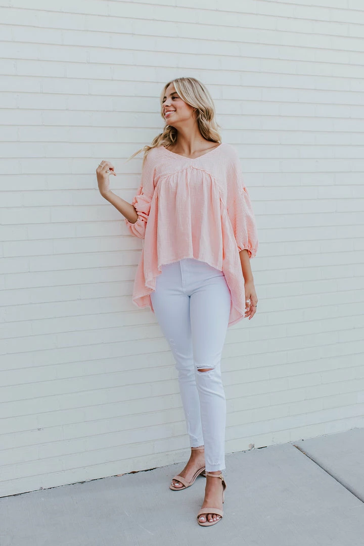 This cute little top is going to be a new favorite! The color. The smocking. The sleeves. Perfection! You can pair this with any shorts, jeans, or skirt in your closet!