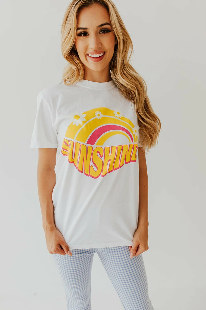 Feel the Sunshine in this adorable graphic tee! It’s so bright and fun! Pair this with biker shorts, jeans, or over your favorite basic dress!