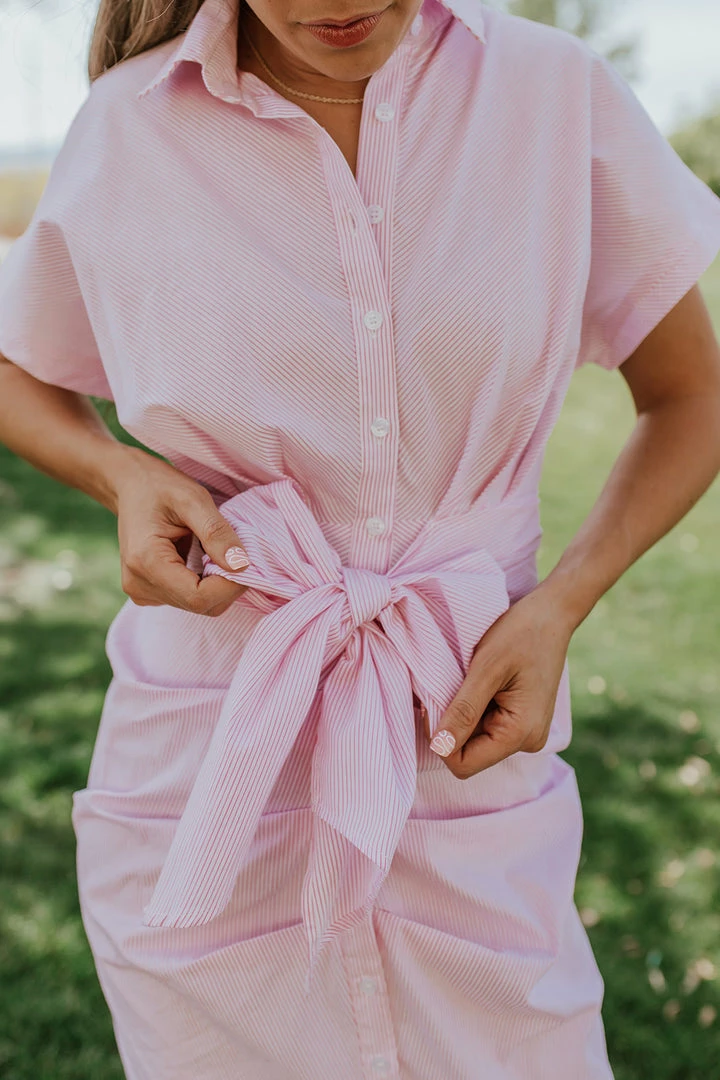 The Stassy Dress is THE dress to have this spring and summer! The gorgeous ruching and shape and added tie detail make for the perfect, most flattering dress that you can dress up or down!