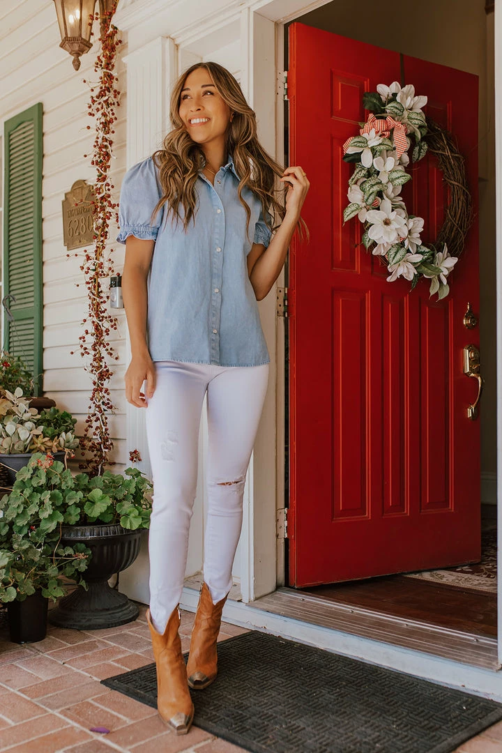 This top gives us aaalll the cool-girl western vibes! The unique buttons and detail around the collar is the perfect mix of edgy and feminine. Pair this top with literally anything for an outfit that will turn heads!