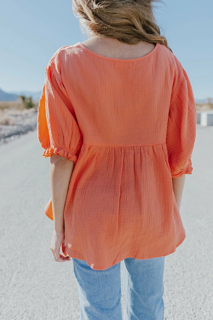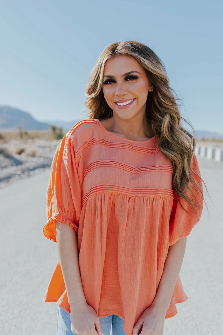 The Cassie is going to be a must have top this spring! Dress us with a skirt and wedges for brunch or dress down with jeans and sandals for a day out and about! You’ll definitely stand out in the gorgeous coral color!