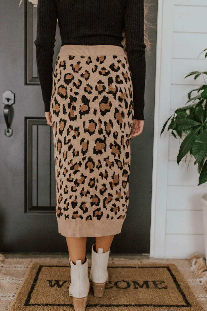 This sweater skirt is an absolute stunner! It’s warm and cozy, perfect for the cold weather months! The leopard print makes it stand out! Pair with long sleeve tops and sweaters for all of your fall and winter outings!