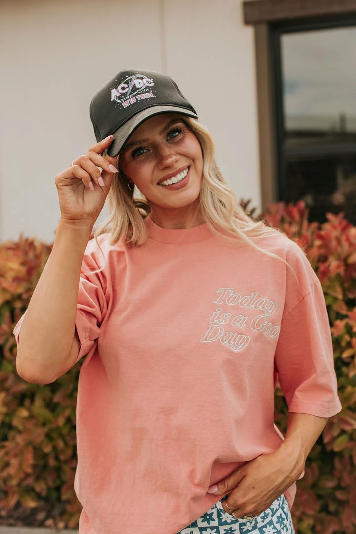 Rock on with this super cute AC/DC trucker hat! Add some edge to every outfit! The colorful lettering adds a pop of color and makes this hat so fun!