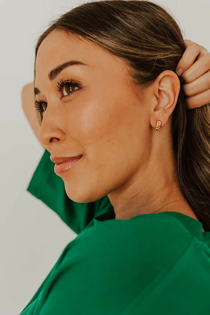 Add a touch of gold to any outfit with these cute, gold half hoop stud earrings!