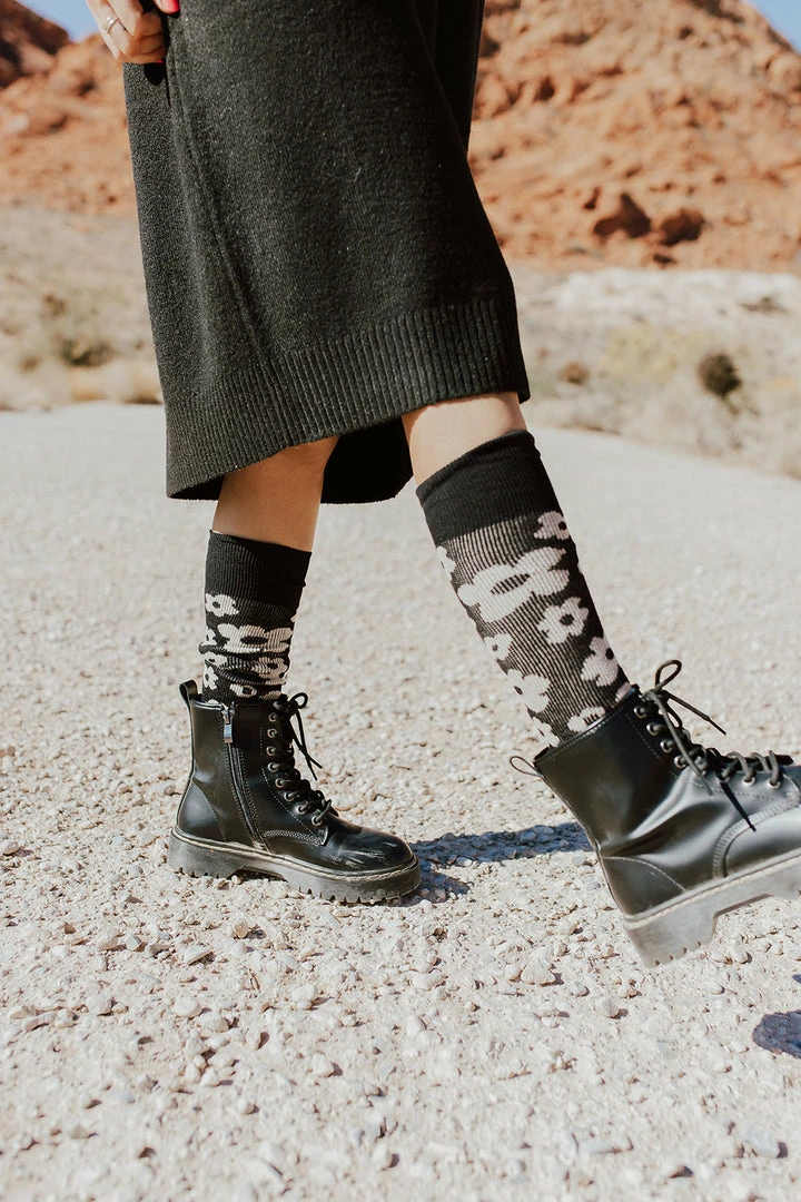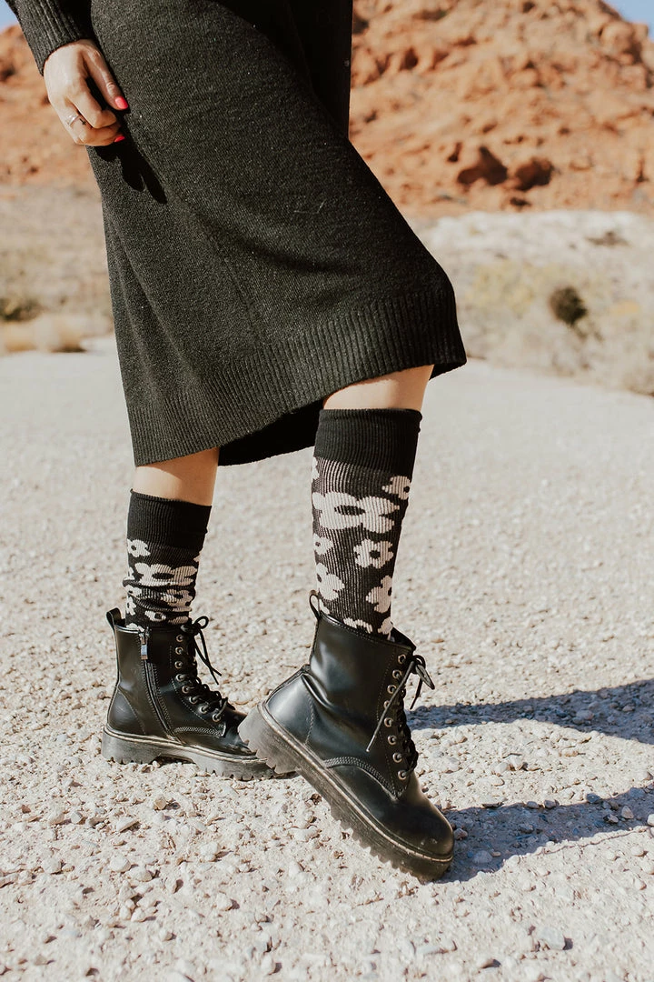 The Flower Power Knee socks will add the perfect amount of fun to any outfit! Pair with skirts and booties for a 70’s vibe outfit!
