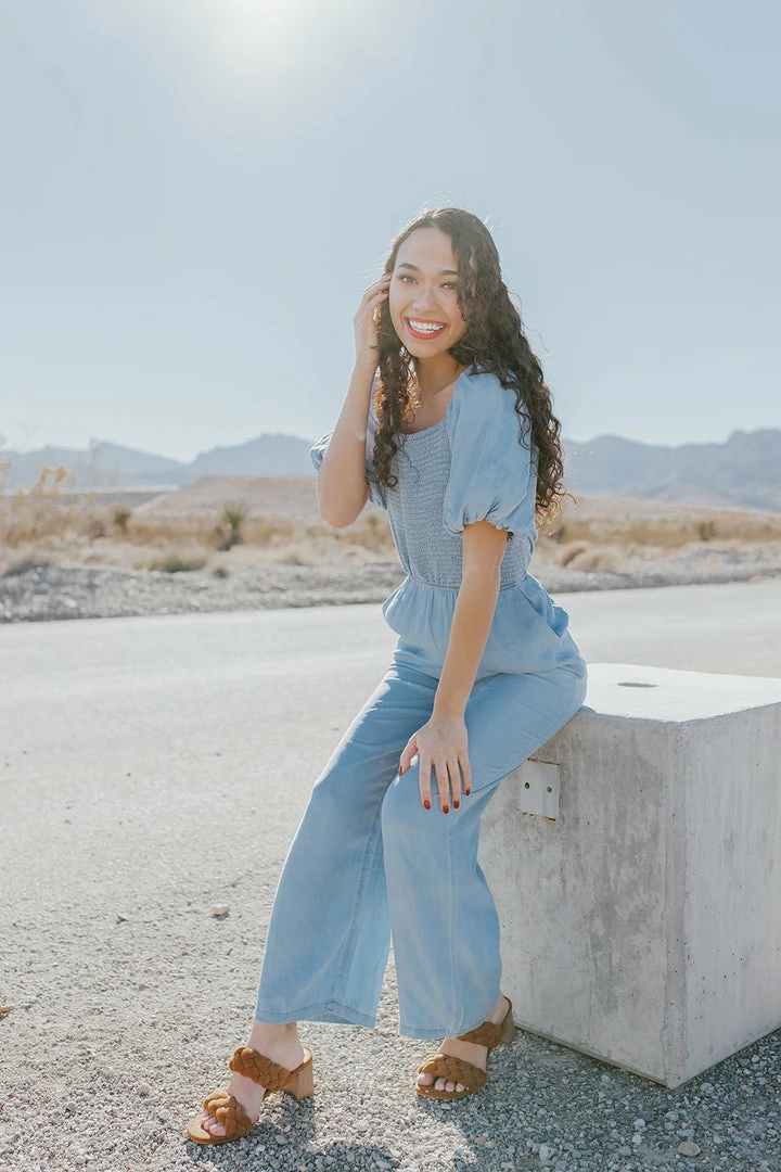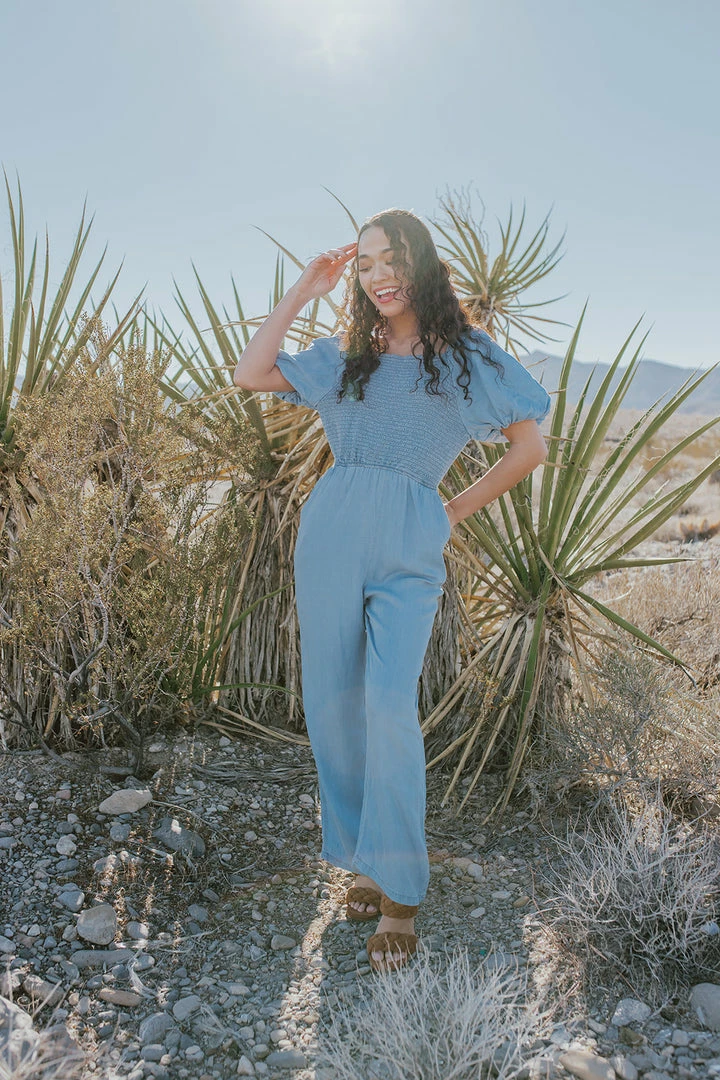 Go anywhere in our new denim jumpsuit! The lightweight fabric will keep you cool and comfy where ever you go! Layer it with a jacket or sweater for a breezy spring day!