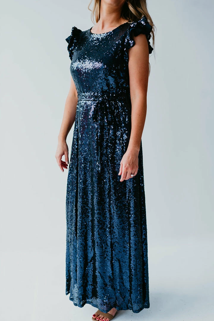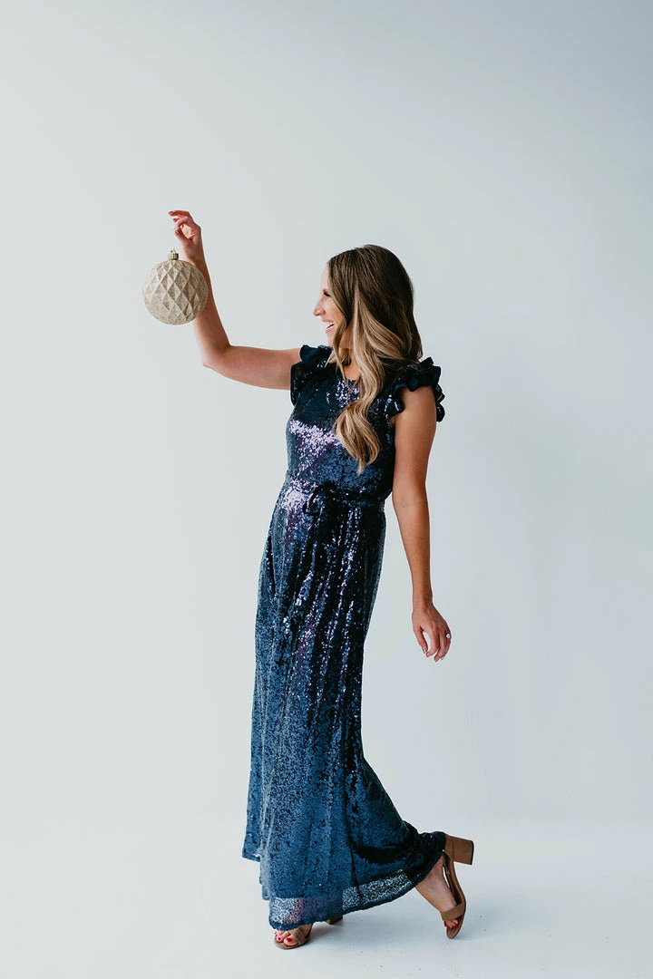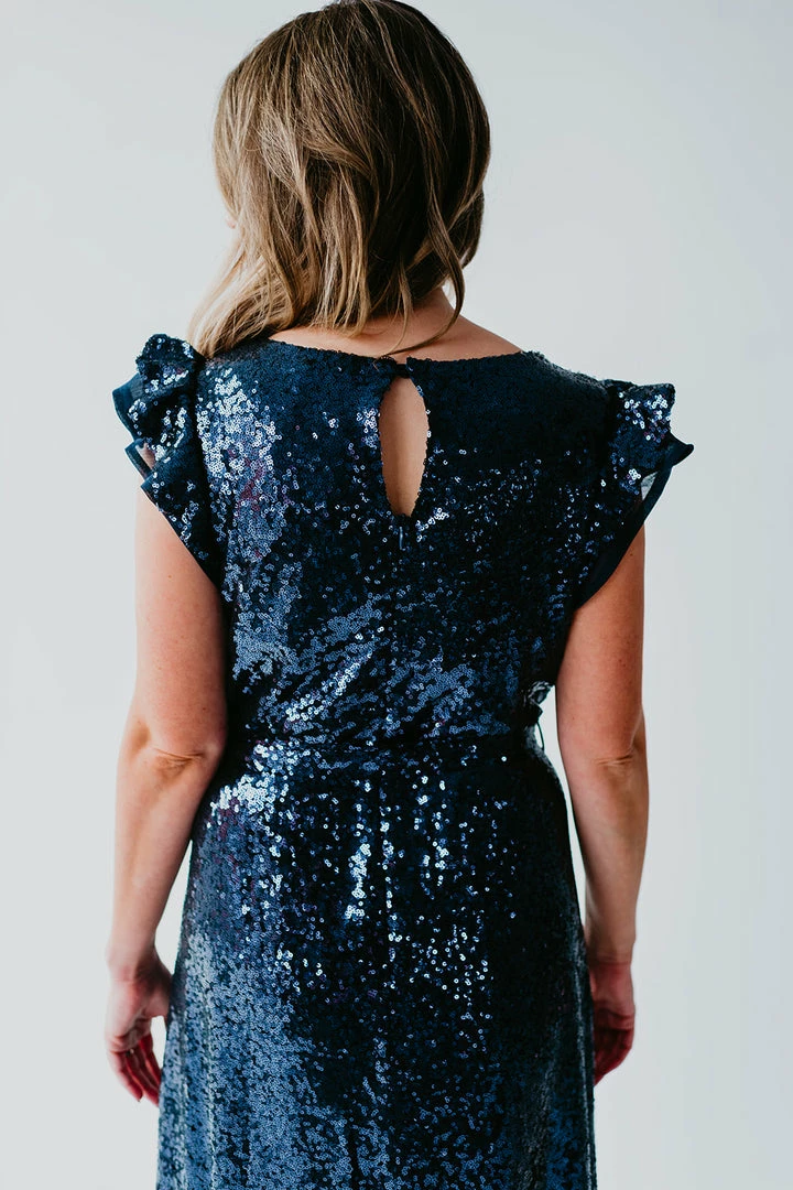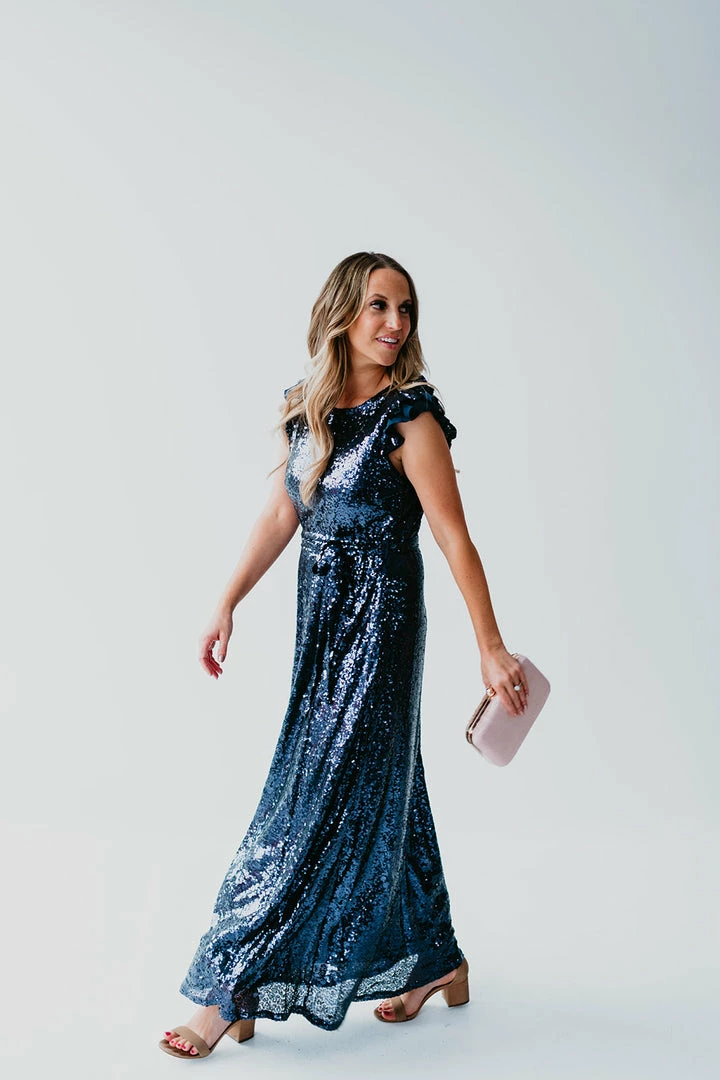The most gorgeous holiday dress has arrived! The beautiful navy blue sequins are so festive and make the dress perfect for holiday parties, family pictures, and even as bridesmaids dresses!