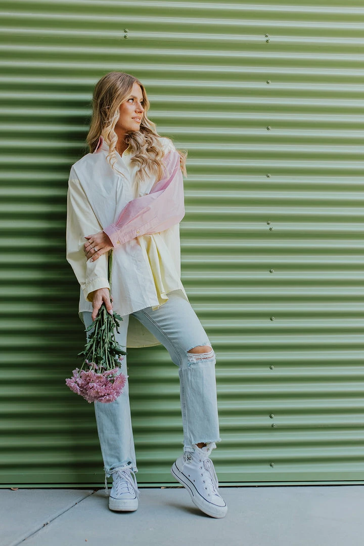 Polished never felt so comfy! This colorblock button up will be a wardrobe staple and have you feeling like a boss! Pair it with jeans and wedges for a polished errands day, or with trousers to work!
