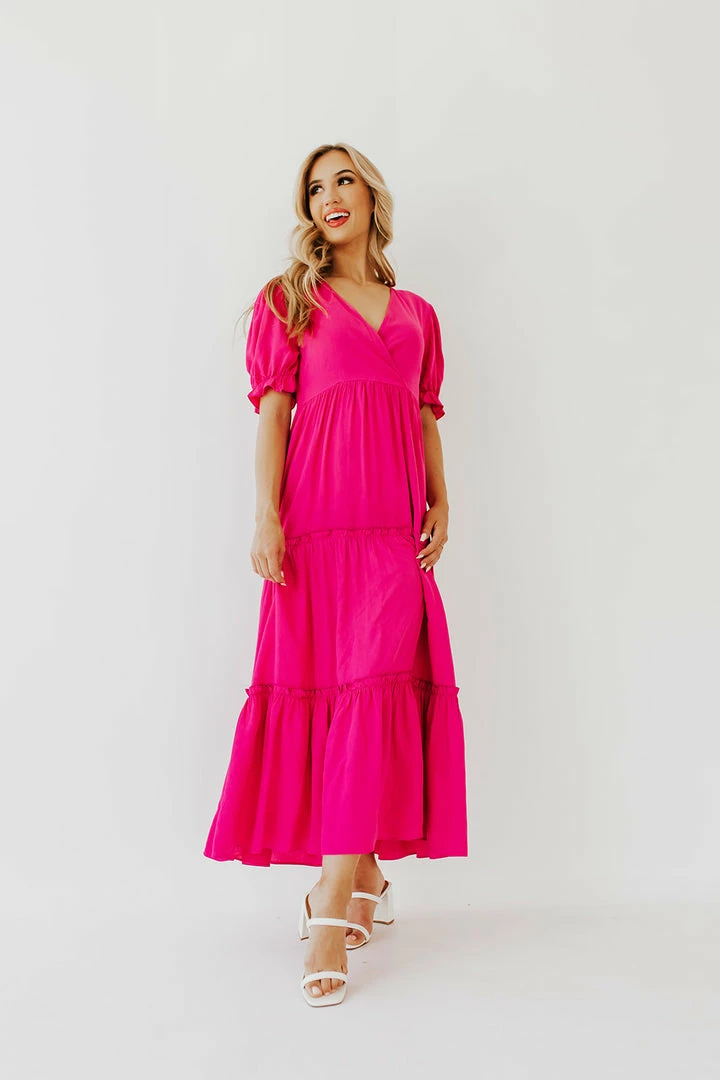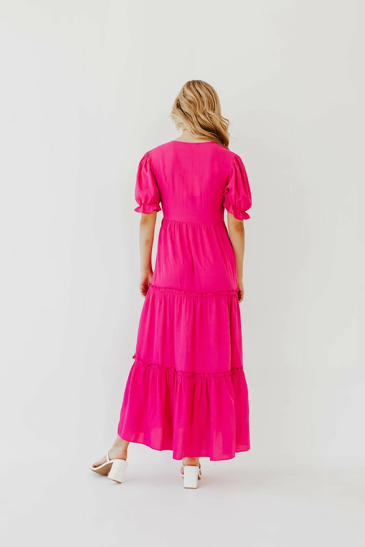 The Preslie Maxi Dress in a must have this summer! The hot pink color and tiers are so stunning! Wear to parties, brunch, church, or just out and about with sandals! It’s lightweight and flowy which is perfect for warm weather wear!