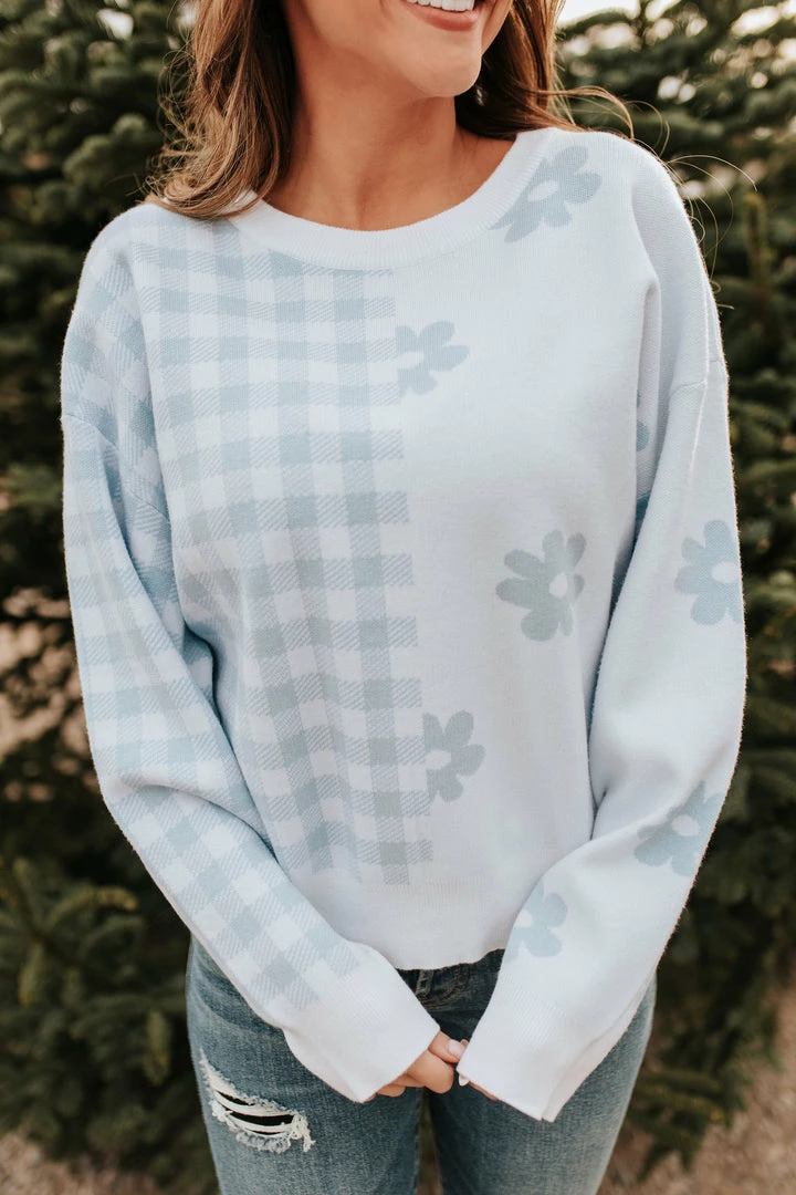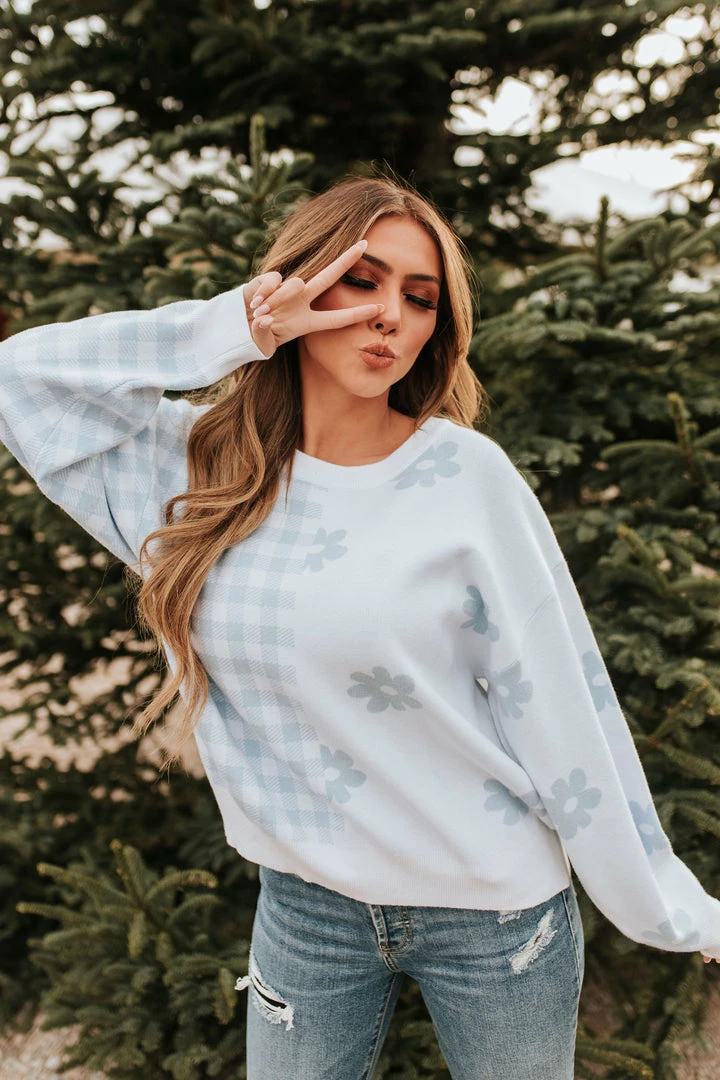 For the perfect combination of comfy-cozy style and fashion-forward flair, look no further than the Bobby Sweater. Color block, checkered pattern, and daisies transform this long-sleeve sweater into a chic, sophisticated look all season long.