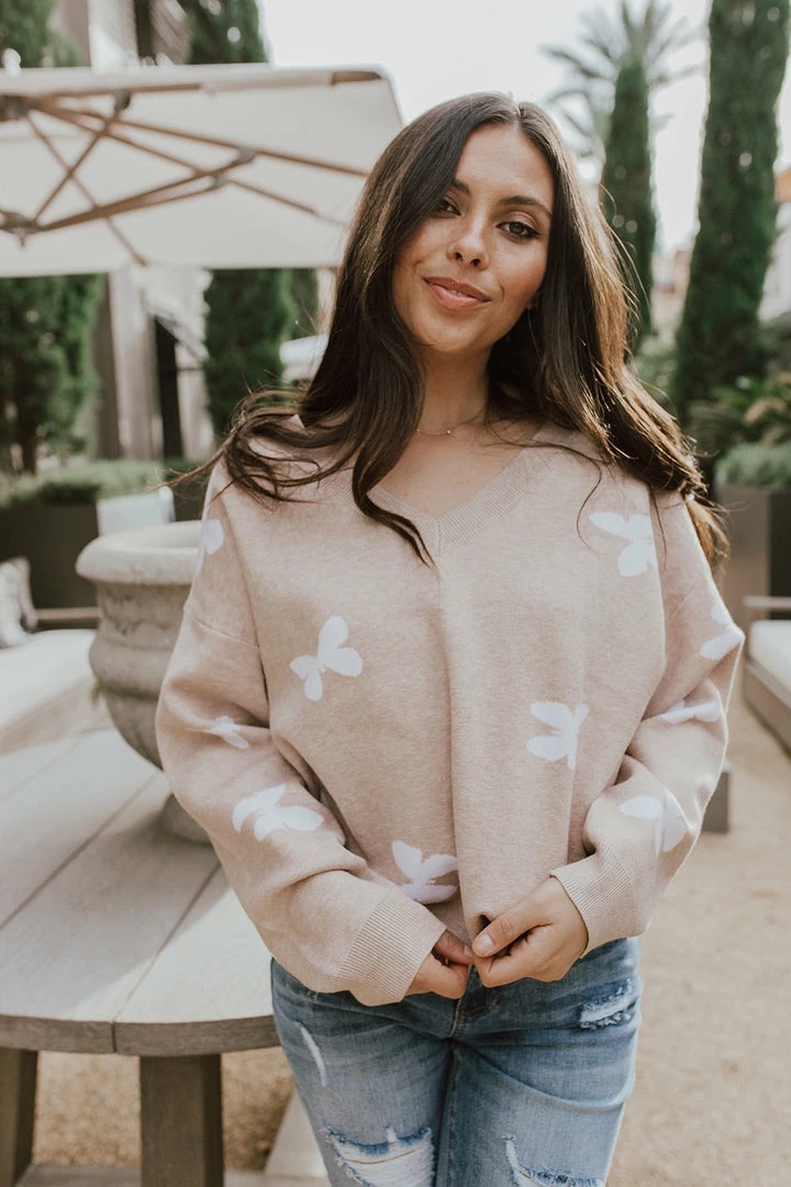You know we love a good butterfly print! The simple butterfly design on this sweater makes it such a great piece to have in your closet. We love the flattering fit and v-neck on this one!
