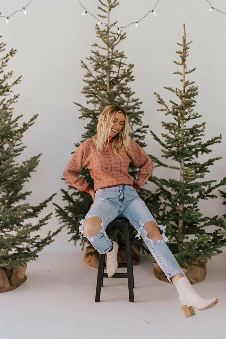 Fun. Cozy. 70s vibes. All the ways to describe the Bradford Top! We love the balloon sleeves and checkered pattern! Pair with skirts and jeans with boots for the perfect outfit!