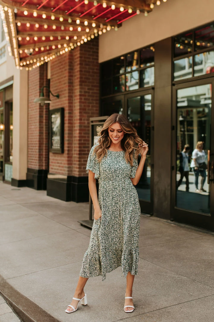This dress is here for the spring FUN! Flutter sleeves add a bit feminine flair to this staple midi dress! Pair her with sandals and a jean jacket for a casual day around town, or elevate it with heels for a date night out!