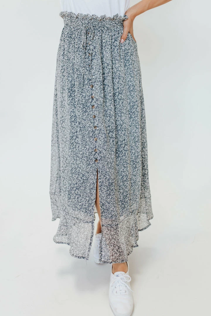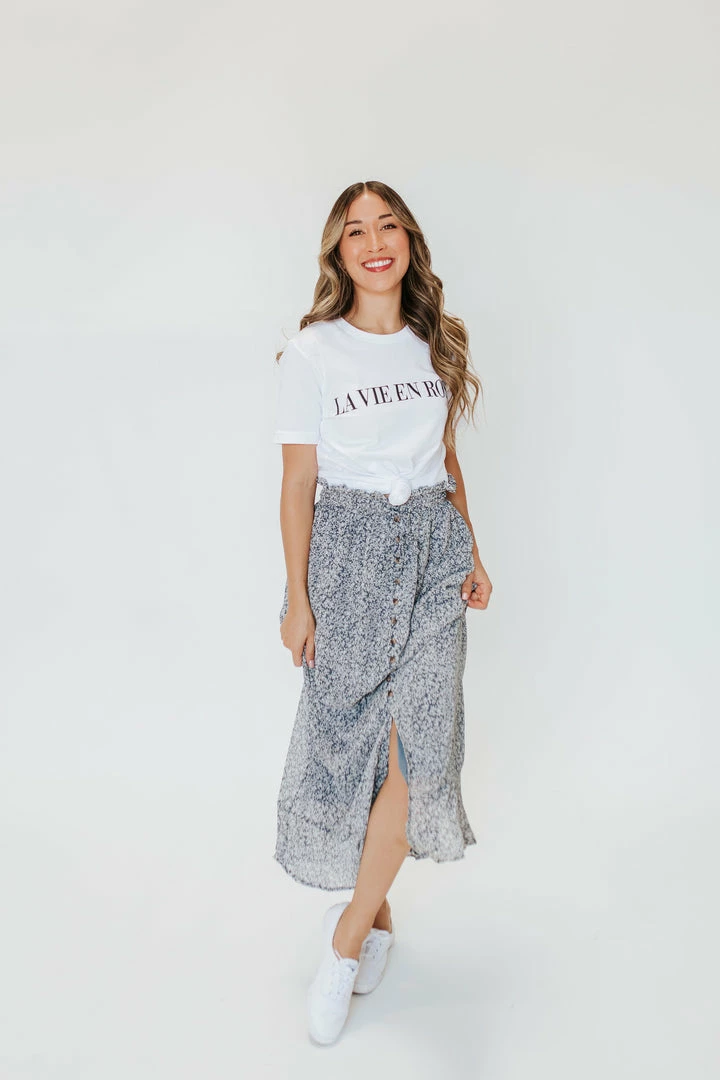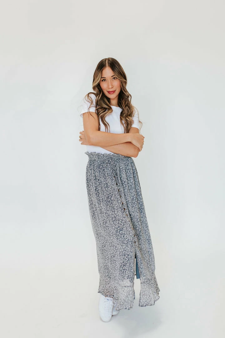 The most beautiful flowy maxi skirt is here! This gem by Mika Rose is a great summer staple that is the perfect color to transition into the next season! Pair with tees, blouses, and sandals or wedges and you’re all set to go!