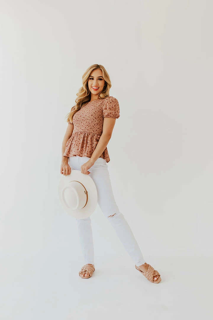 How sweet and elegant is this adorable top! The Brynn Top has it all; smocked bodice, floral print, and puff sleeves! Pair this with any type of bottoms and sandals or heels and you’re ready to go!