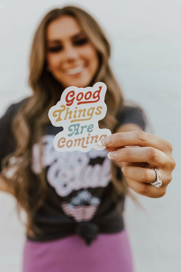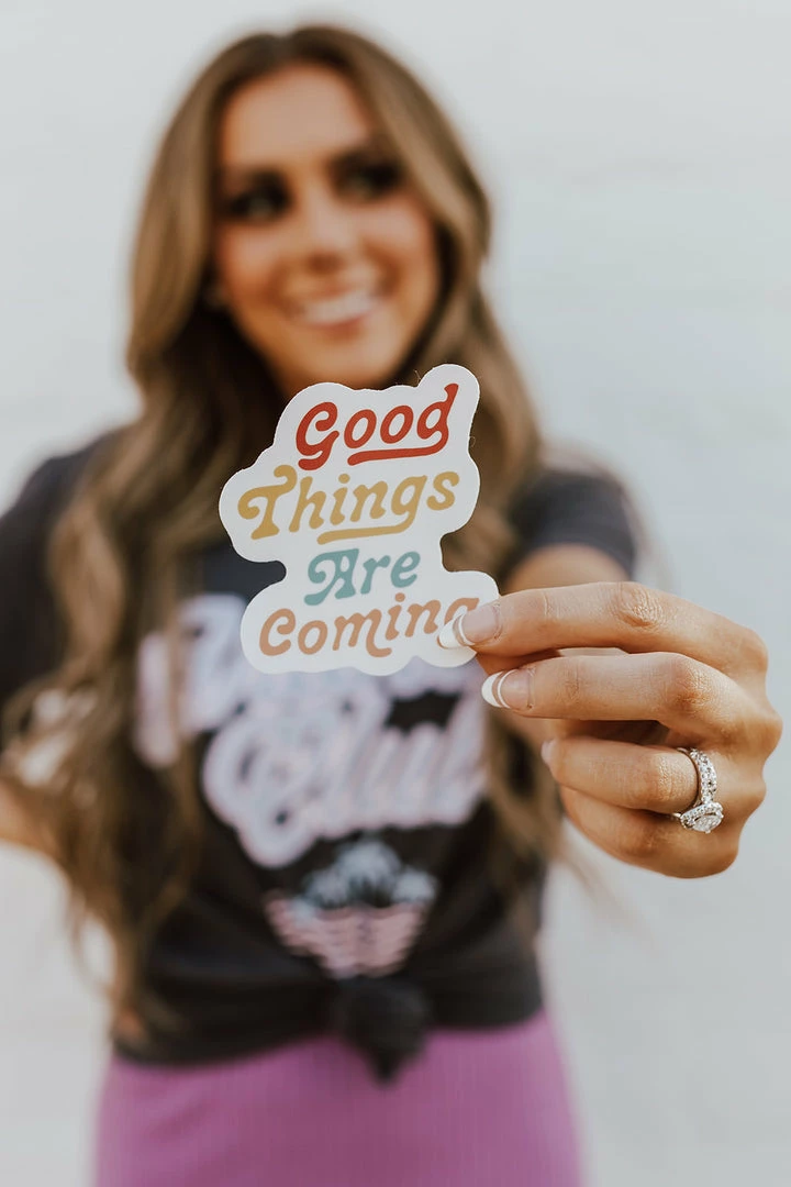 The Good Things Are Coming stickers are the cutest accessory to add to a water bottle, phone case, laptop, or wherever you want to add a little something extra!