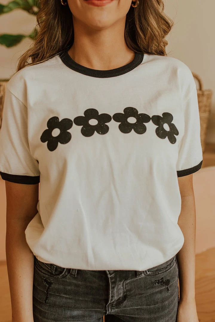 You can never have too many neural tone graphic tees!! This off white and black tee is ready to pair with any of your colorful spring and summer jeans, shorts, leggings, or skirts!