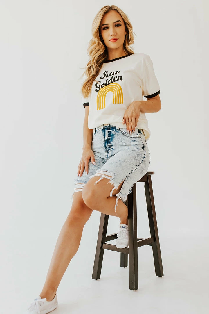The Stay Golden Ringer Tee is our new favorite graphic! Ringer tees are always a classic but add the cutest graphic and you’ll get your newest favorite tee! Pair with shorts or skirts for a look you can wear anywhere, anytime.