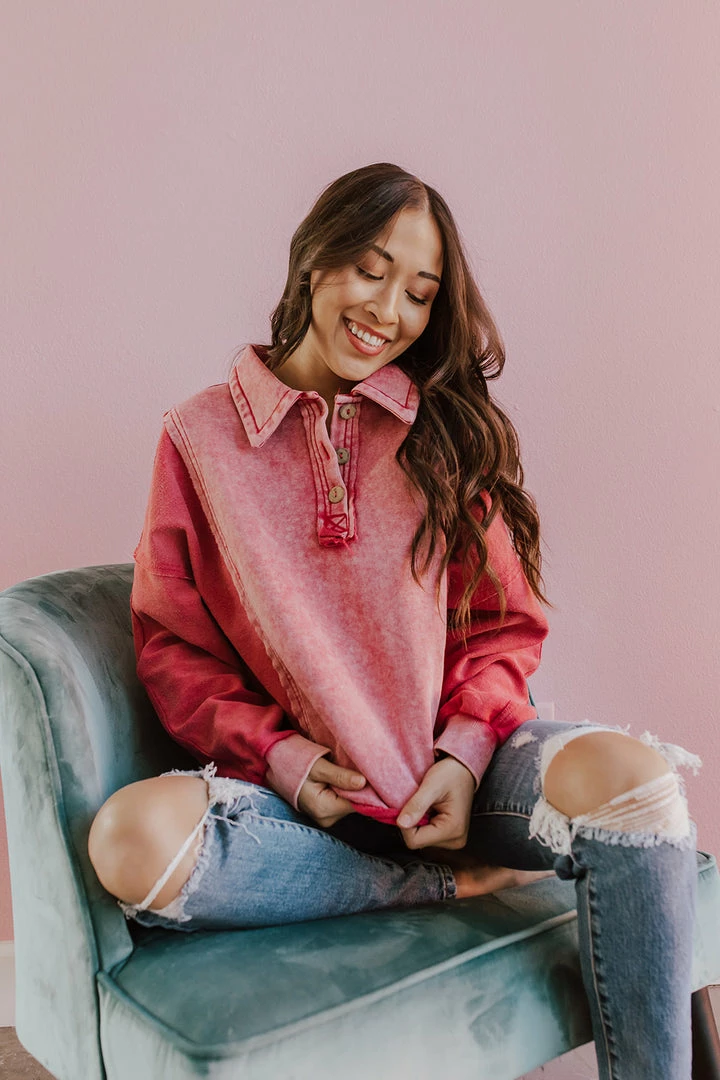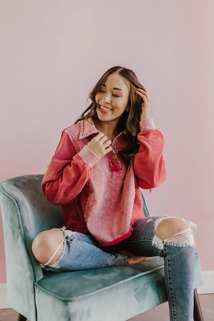 One of the most fun tops we’ve ever seen is here! We loooove the pretty magenta color! The thick material makes it perfect for the cooler weather without having to layer up!