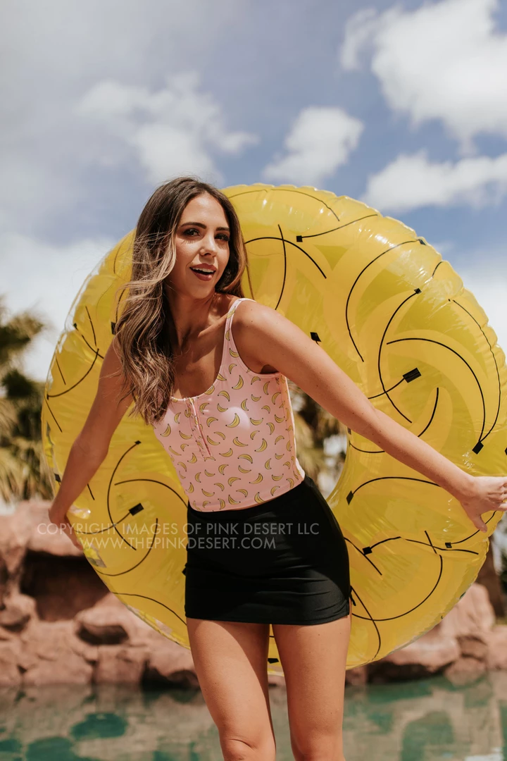 Paired with Not Your Mama’s Swim Skirt in Black.