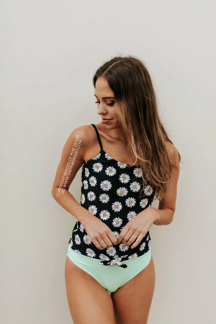 Our modest Blouson Tankini swim top in La La Daisy is a top-seller and is a fit for everybody! Take this effortless look surfing, paddle boarding, or even just taking a dip in the pool! It’s that versatile swim top with a built in shelf bra that keeps everything in place with the perfect full coverage to leave you feeling confident and fabulous.