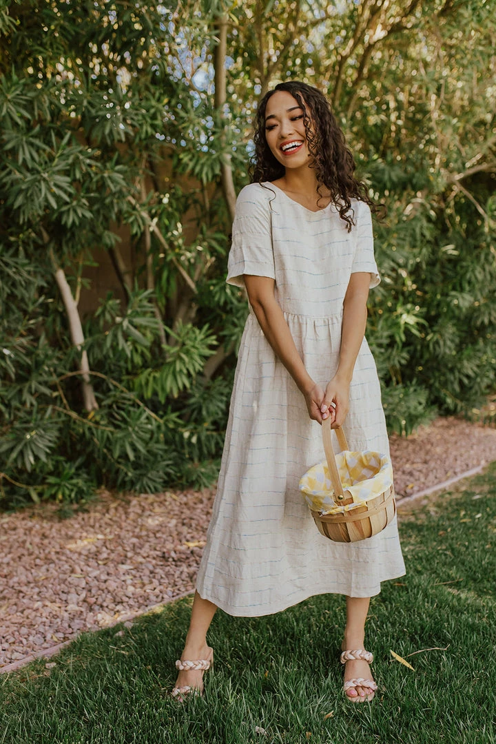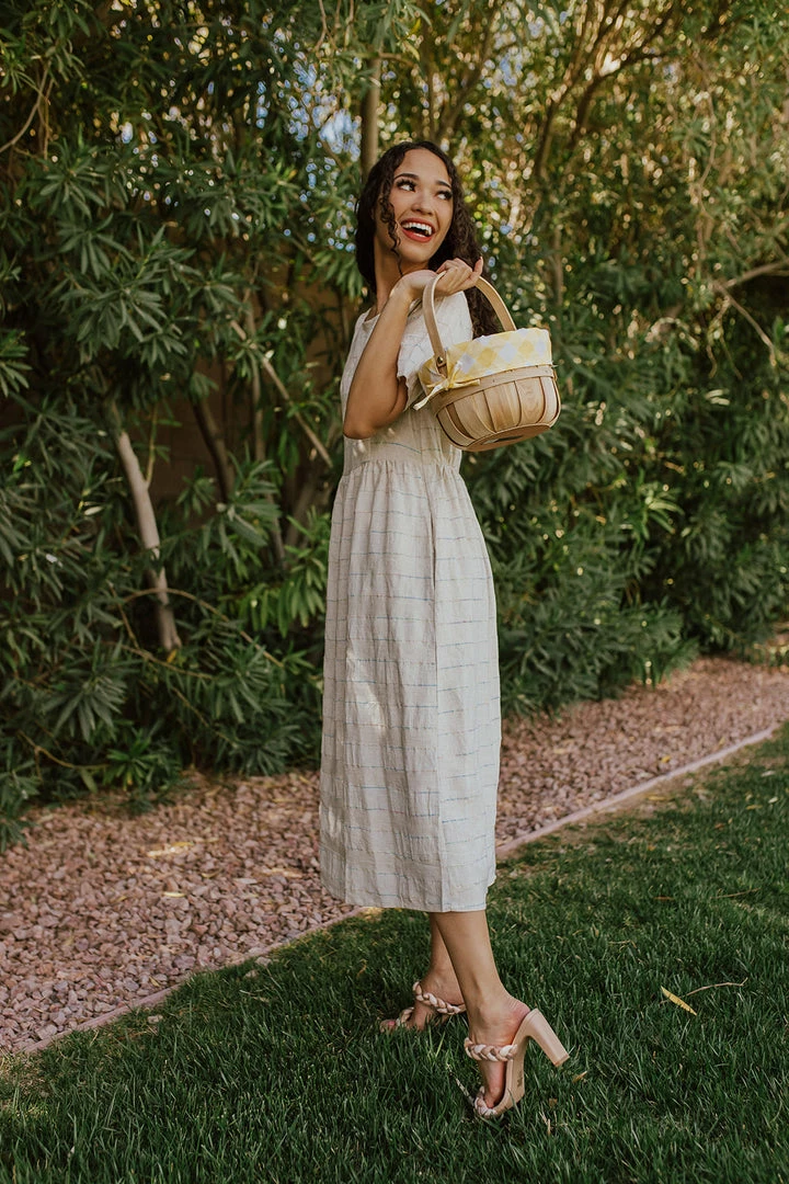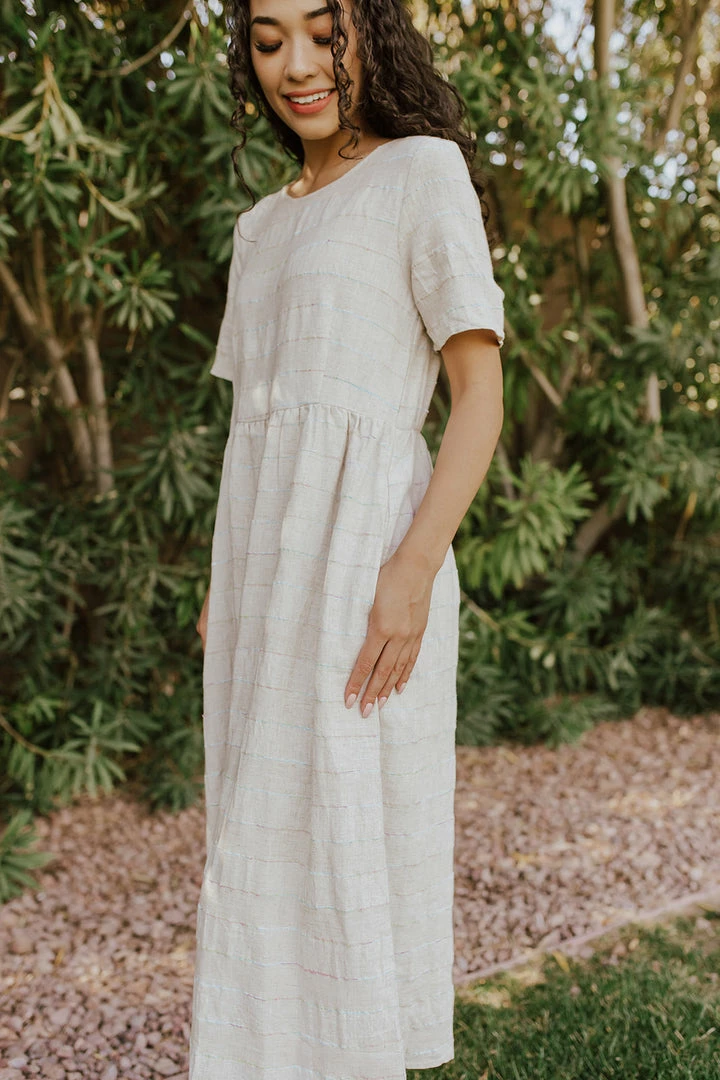 Madison is here and ready for Easter festivities. Whether you are heading to church, or an egg hunt, this lightweight natural and pastel dress is your perfect outfit! pair it with heels, wedges, or some flat sandals, and you’re ready to go!