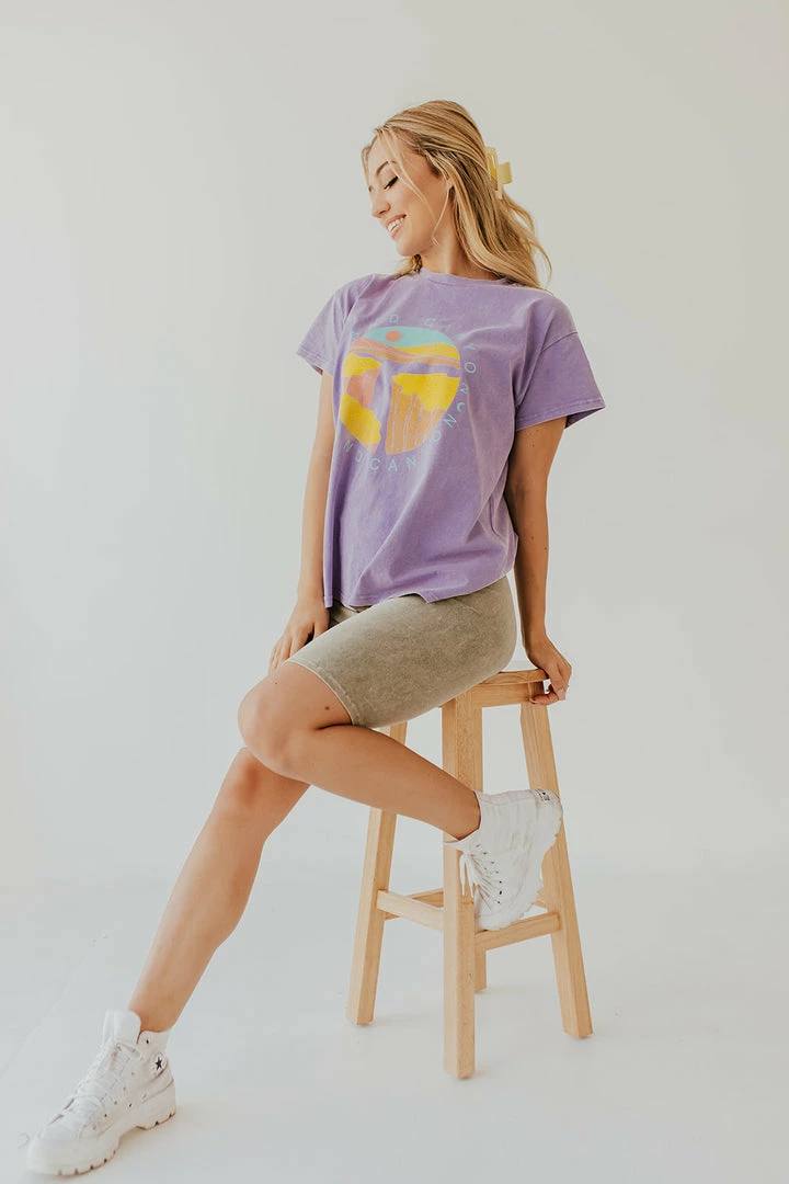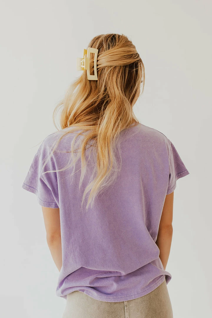 We LOVE a good, simple graphic tee! The dusty lilac color is so fun and adds the perfect amount of color to every outfit! Pair this with jeans, skirts, biker shorts, or over dresses for an easy, cute outfit!