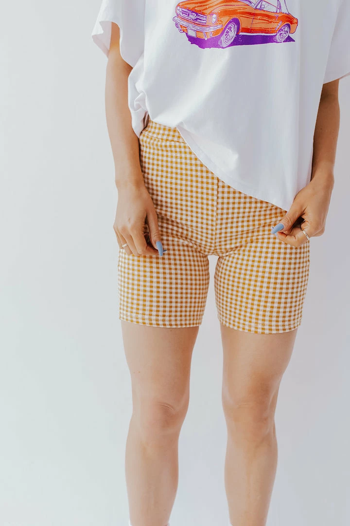 Running errands just got more comfy, with the Out and About Biker Shorts in Orange Gingham! Paired it with an oversized tee ad some sneakers, and you’ll turn heads at the farmers market or grocery store aisle!