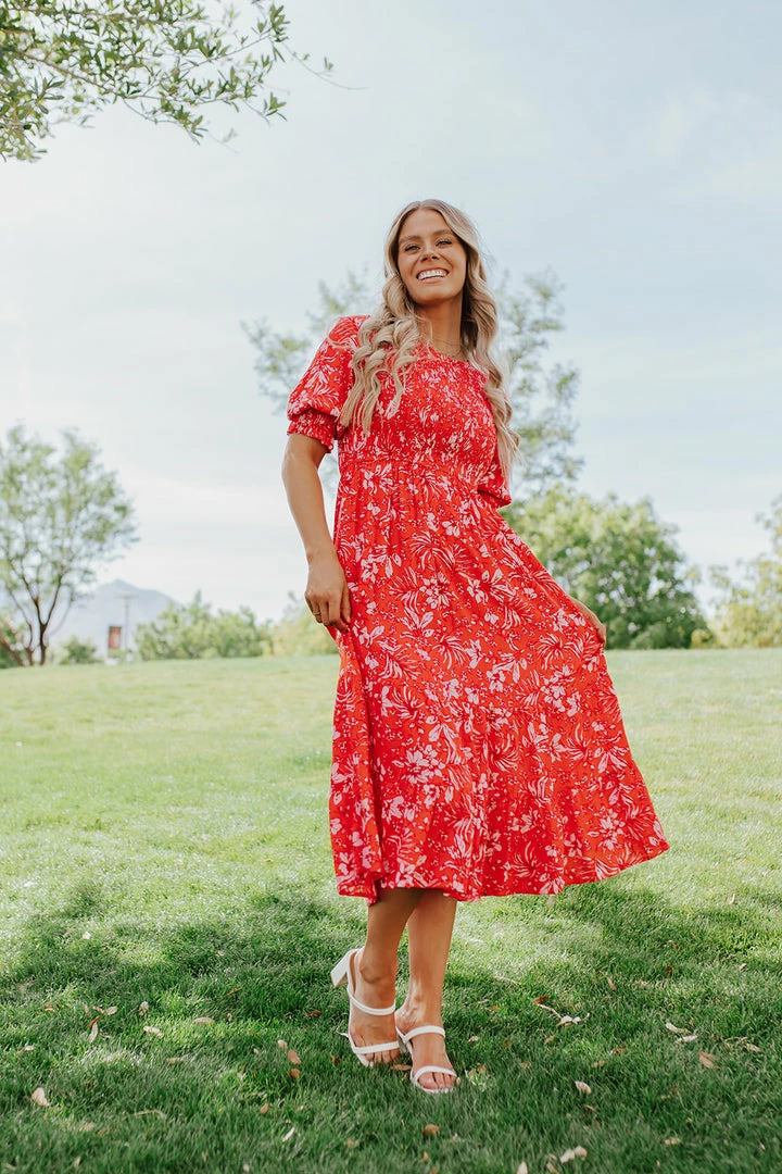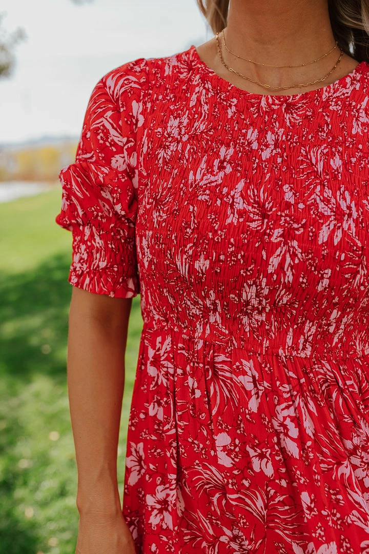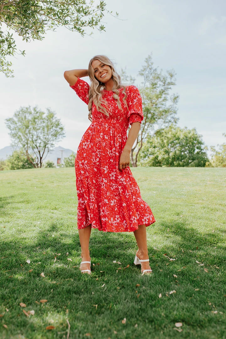 The Reese is the perfect addition to your closet this summer! We love the pink floral print! This dress is pretty and elegant but lots of fun too with the bright colors! Pair with any type of shoe, and you’re good to go!