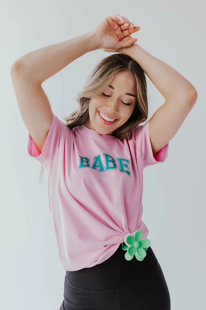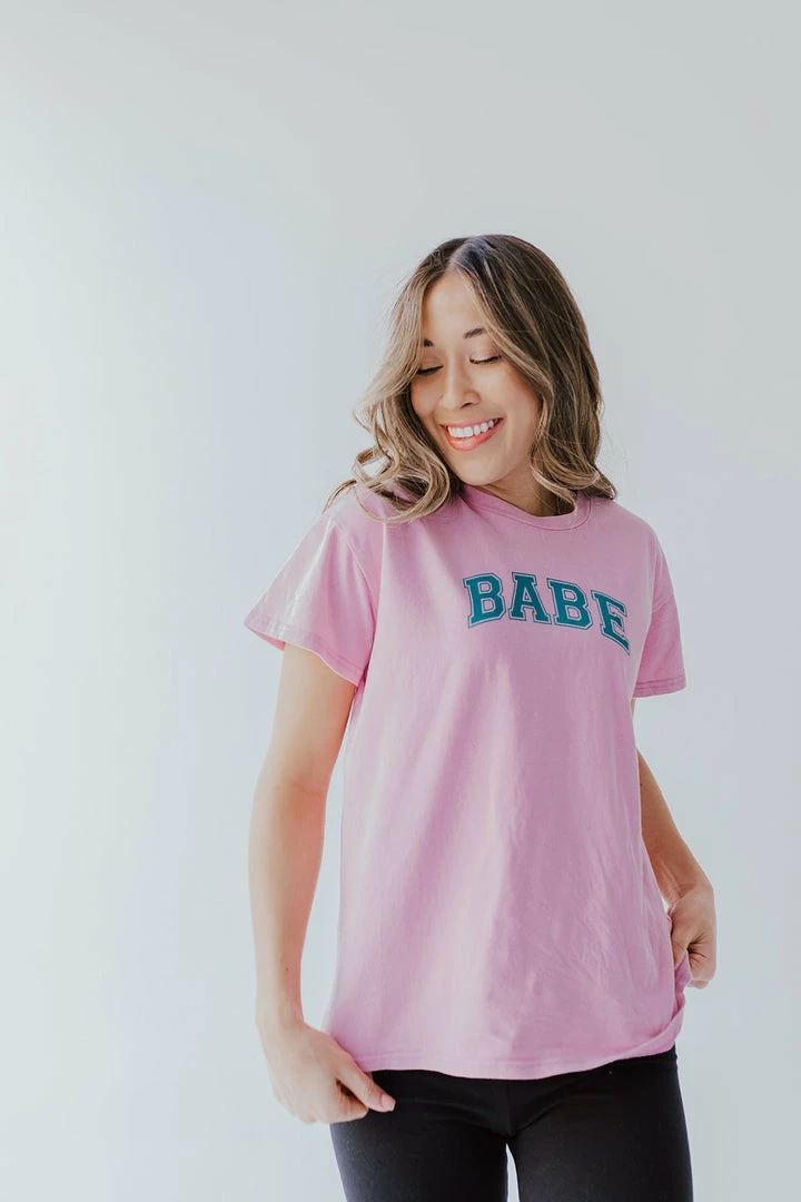 - “Babe” graphic in dark green