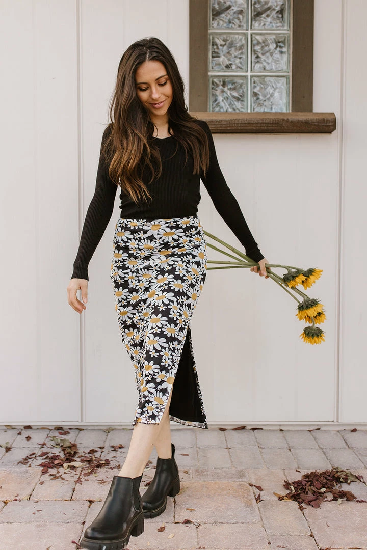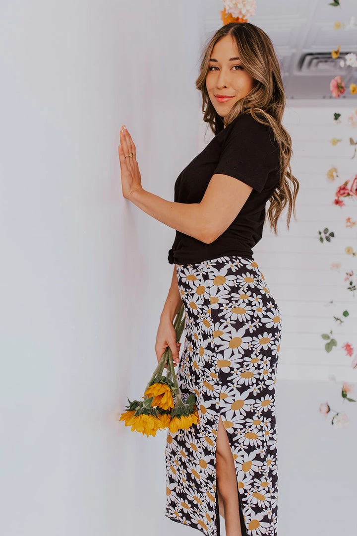The Darling Daisy Midi Skirt will be your go to midi skirt all year long! This skirt can be worn so many ways! Pair this skirt with sweaters and boots now and graphic tees and sandals in the warmer months ahead!
