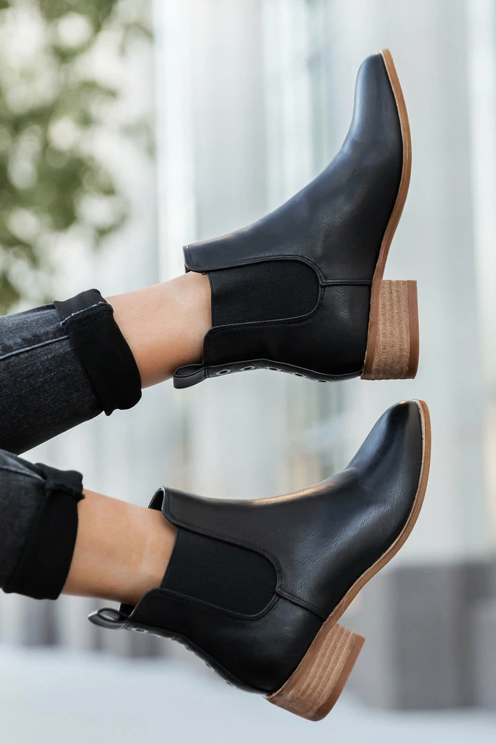 The perfect booties with grommet detailing down the back, pointed toe, and elastic sides that takes a simple boot to trendy and chic. Style these with your favorite pair of denim or a cute dress!
