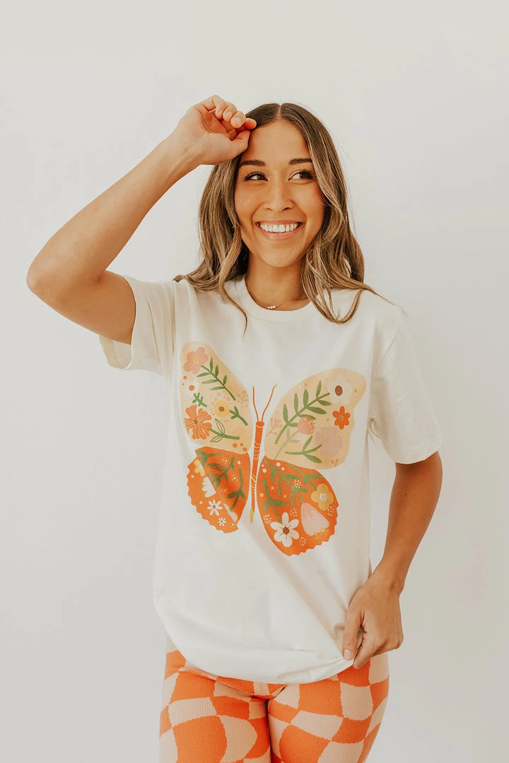 Make sure to grab this adorably printed tee for all of your summer activities! Pairs great with any bottom, whether its denim, a skirt, or biker shorts you will be feeling as light as a butterfly!