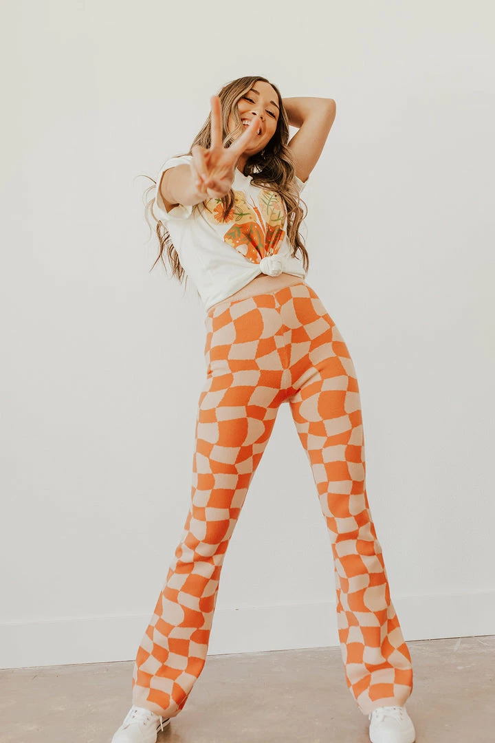 Paired with The She’s Perfect Knitted Pants in Peach and The Smiley High Top Sneakers in White.
