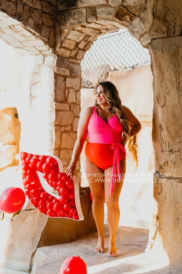 Meet the Sarah Wrap One Piece! Designed by Sarah Tripp and the Pink Desert Design Team, this swimsuit checks all the boxes. With thick supportive straps, flattering side ruching, a wrap bodice, and a feminine side waist tie. With the right amount of coverage and support, it’s everything one could ask for in a one-piece!
