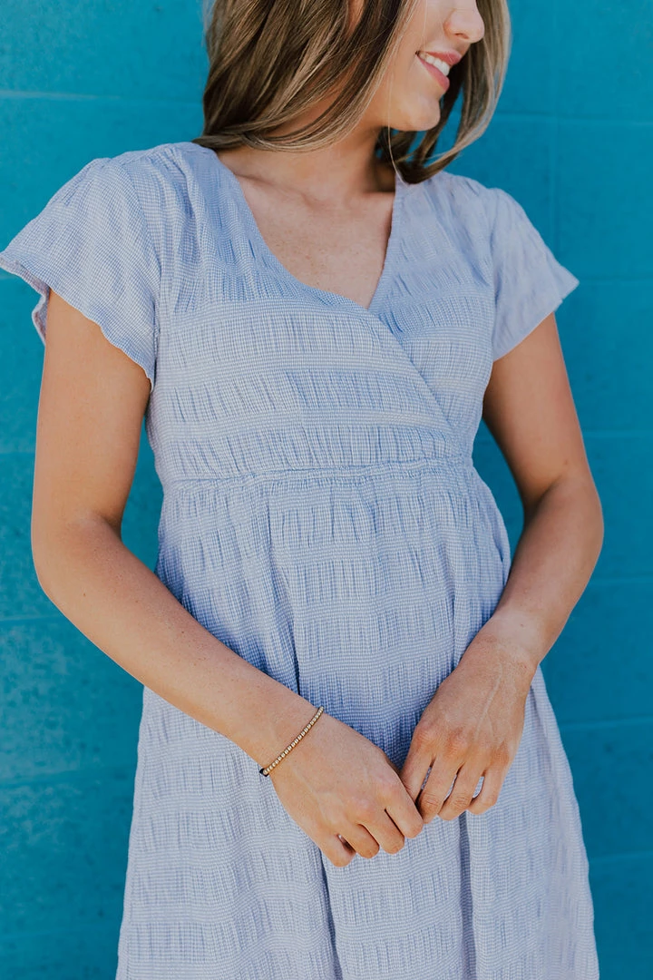This dress is a classic, feminine, and beautiful dress! It’s such a flattering fit and the color is perfect for those summer days! We love this dress with a cute pair of heels and wedges!