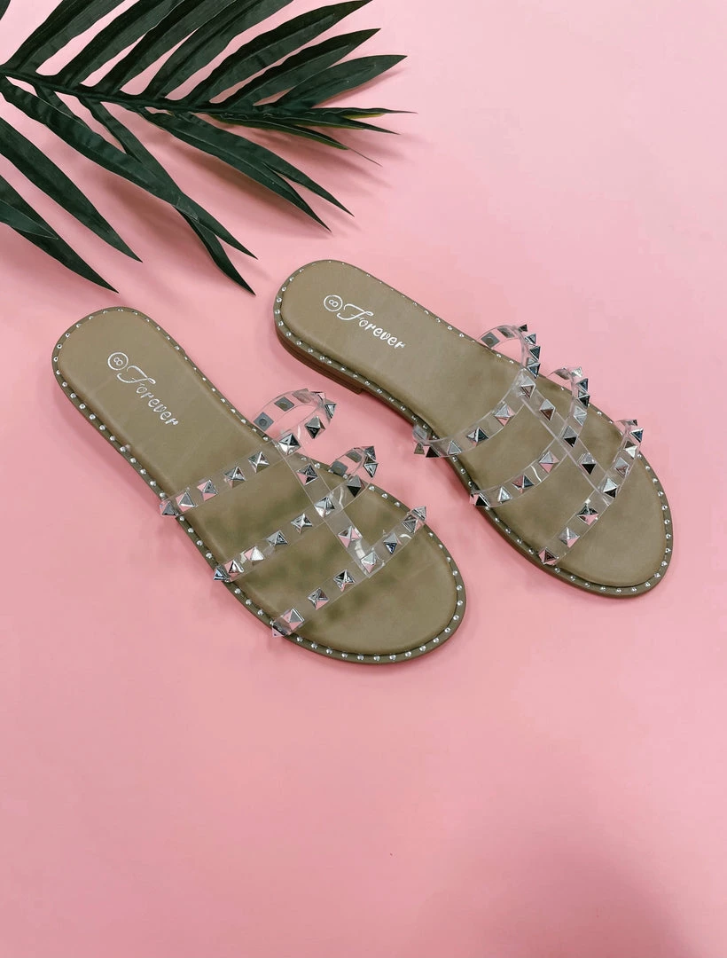The Sabrina Slip On Sandal takes all your summer looks to the next level! These studded sandals add a little bit of edge and fun to any outfit!