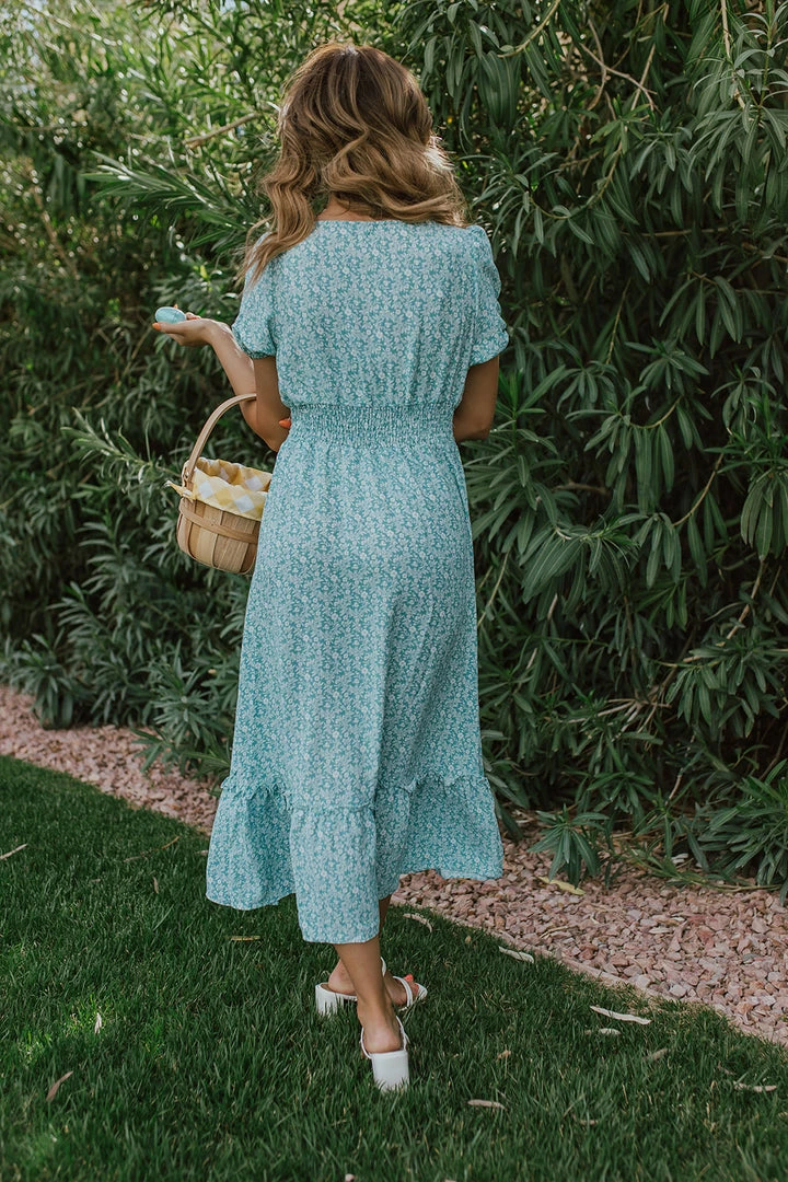 The Tiana Midi Dress is such a beauty! The details are stunning! We are loving the teal and white floral and the flowy silhouette! Pair this with any type of shoe for the prettiest outfit for Easter Sunday, brunch, bridal showers, or any other event or gathering this Spring!