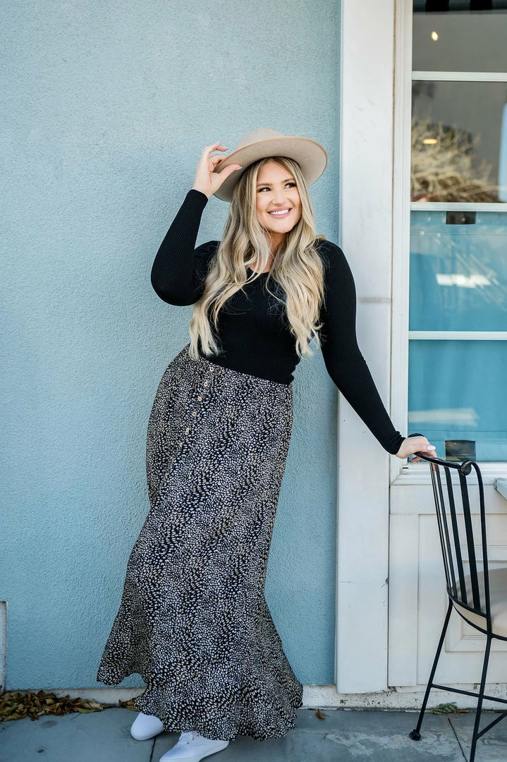 The world will move for you as you strut in this fierce skirt! Light weight, comfy, and cute! You have found your new power skirt! Pair with a graphic tee or sweater for an instant outfit!
