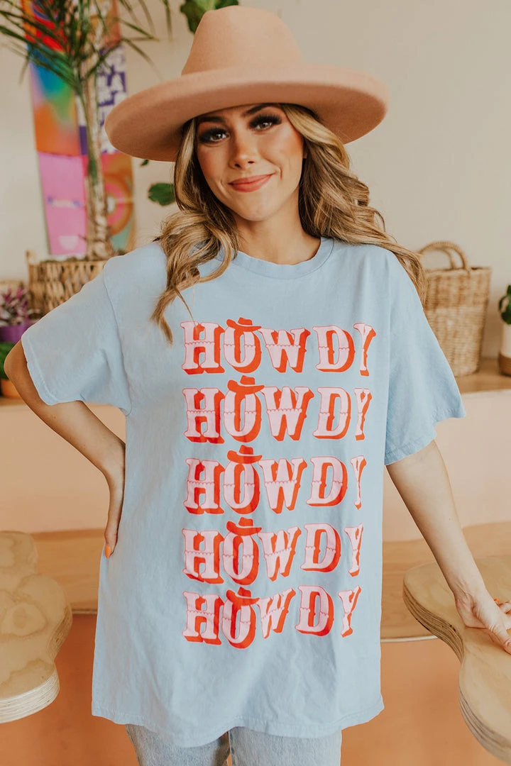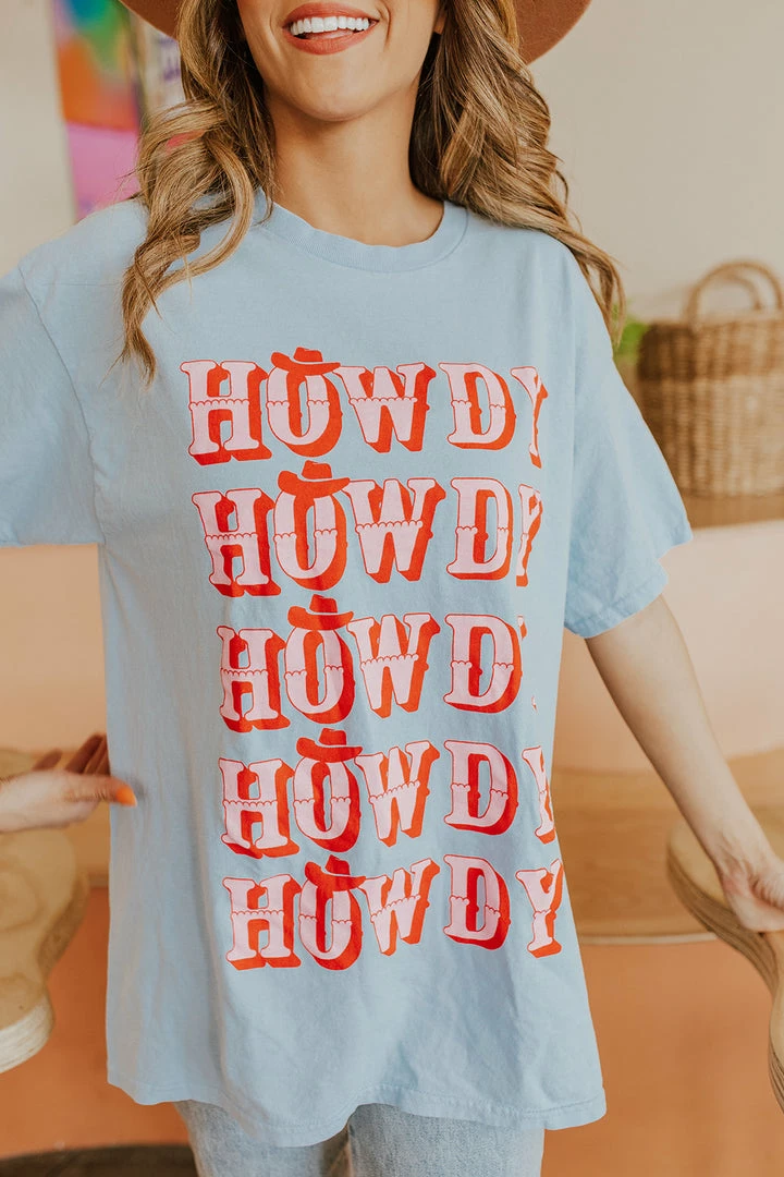Say Howdy in this super cute graphic tee! You can pair this with jeans, shorts, leggings, skirts, or even over dresses to add a pop of color to any outfit!