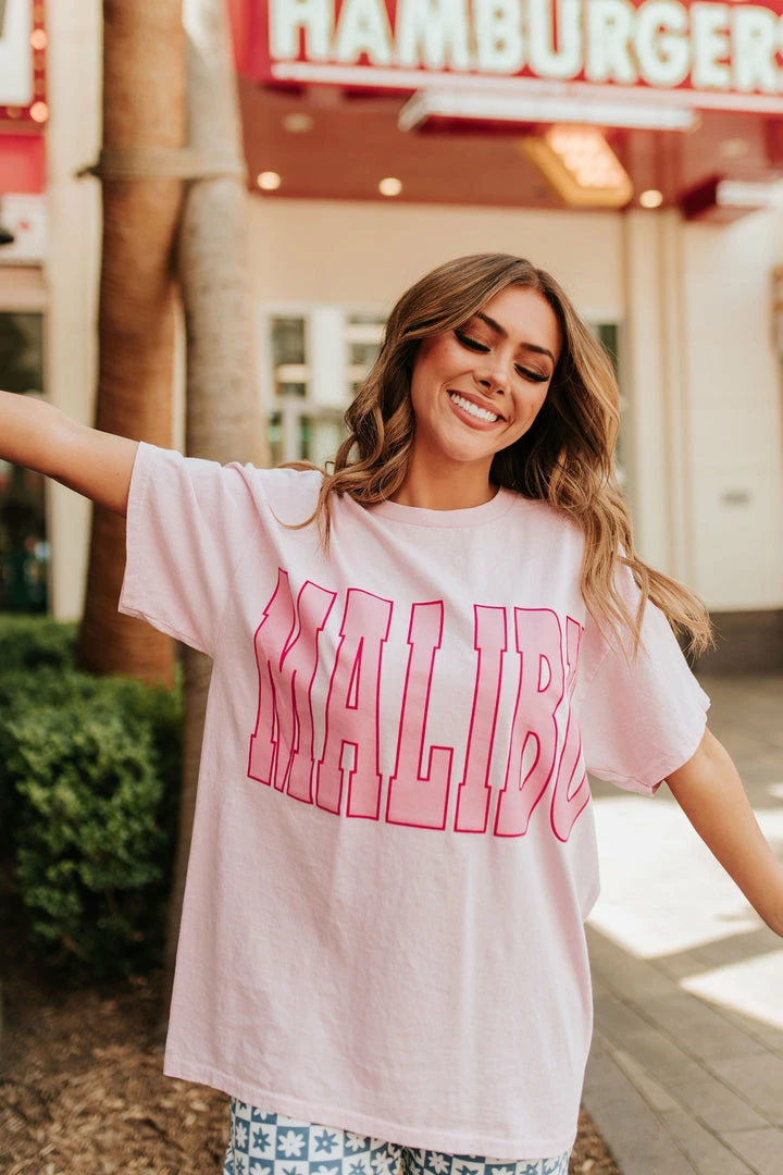 We’re here for all of the graphic tee’s! The Malibu graphic tee is so cute! The hot pink graphic adds the right amount of color to any outfit! Pair with any type of pants or shorts for an adorable outfit!