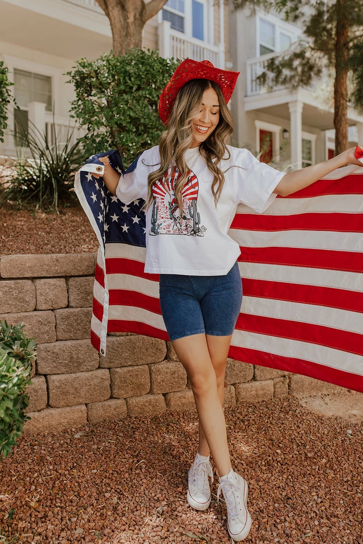 Get ready for the Fourth of July with our newest exclusive tee that will be sure to set the fireworks off! Rock this adorable tee with shorts or over swim for the perfect outfit!
