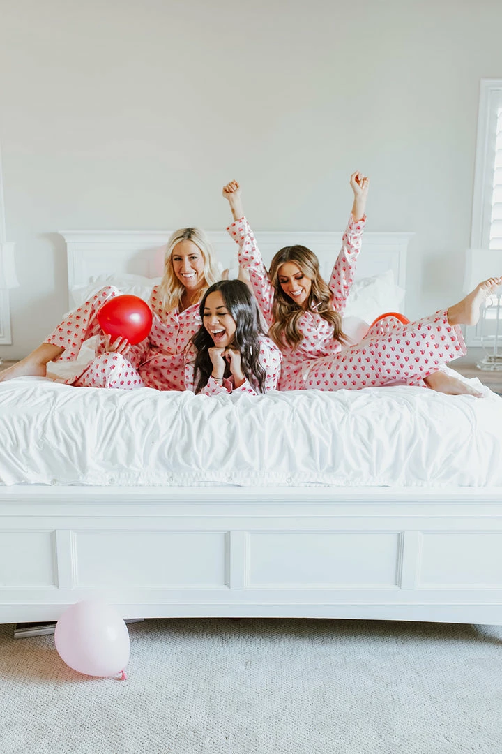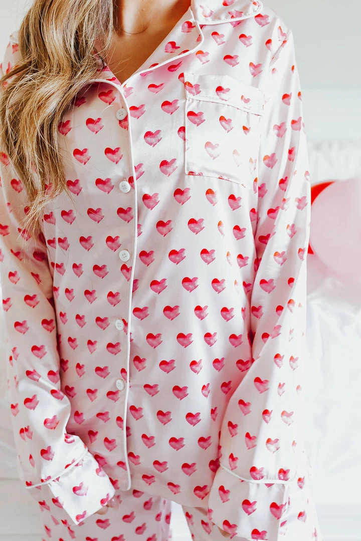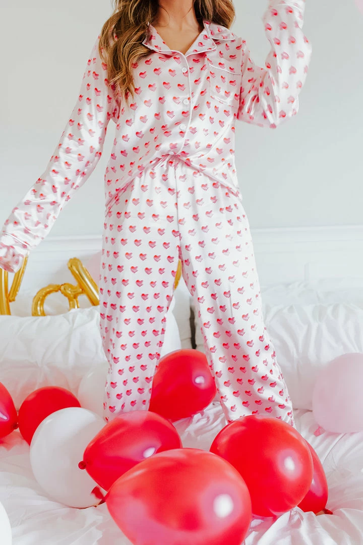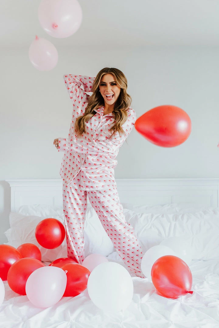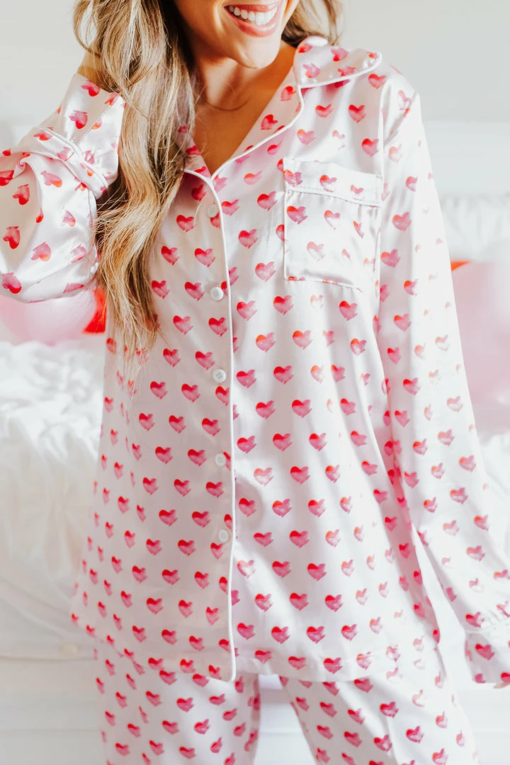 Cozy up all year long in these exclusive heart jammies! The silky satin will keep you cool, while still offering plenty of warmth! The perfect gift for any lady in your life!