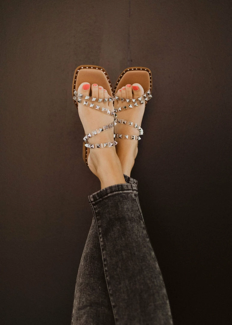 Trimmed in glamorous rhinestones or edgy pyramid studs, this strappy slide gives getups a festive finishing touch. A barely-there heel punctuates, offering support and gentle lift that won’t slow your stride.