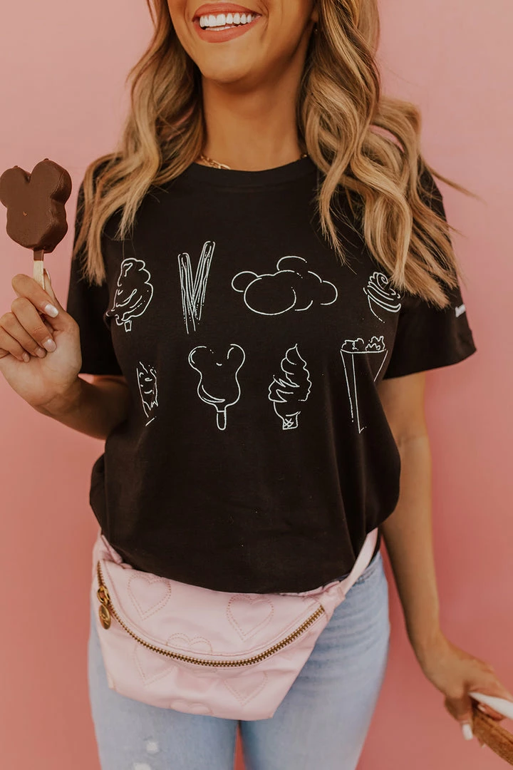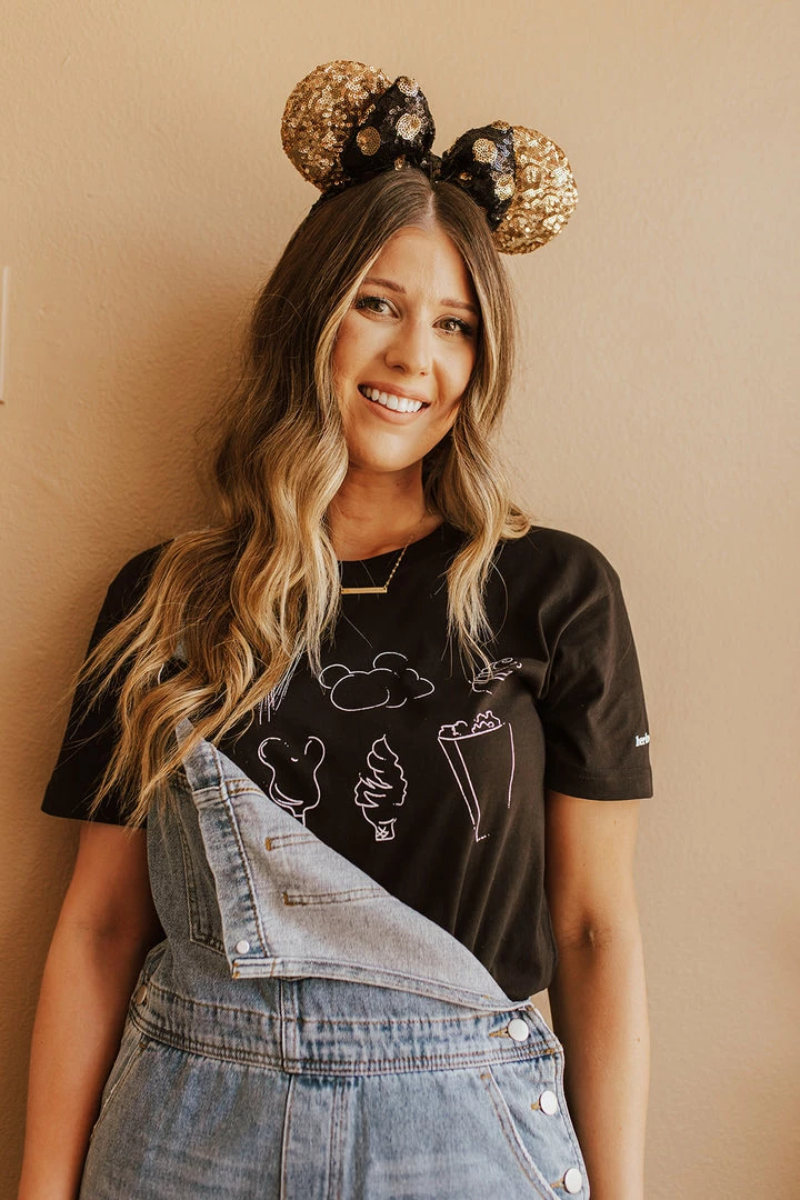 Shop our Unisex Men and Womens Theme Park Tees, and match your little ones in our Snack Tee from Happy Threads by Kels x Pink Desert! Matching Kids Tees available HERE!