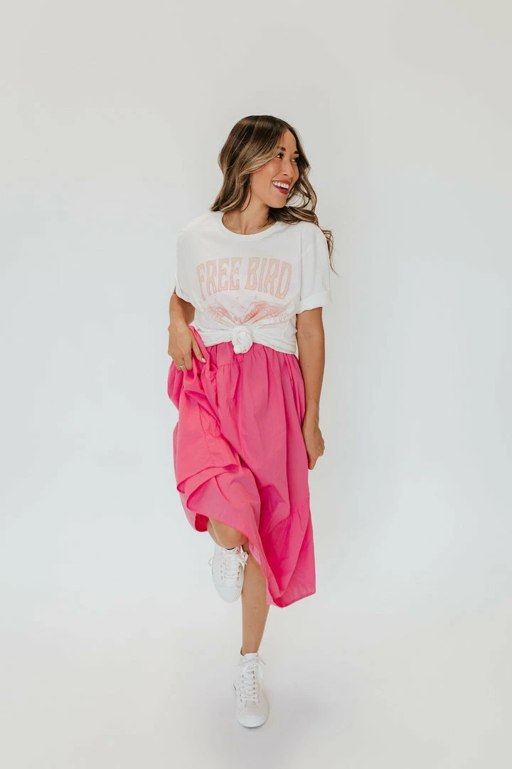 Paired with The Free Bird America Graphic Tee in Vintage White and The Smiley High Top Sneakers in White.