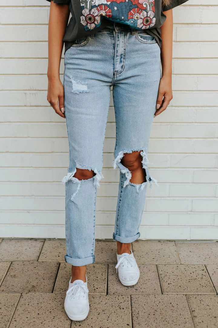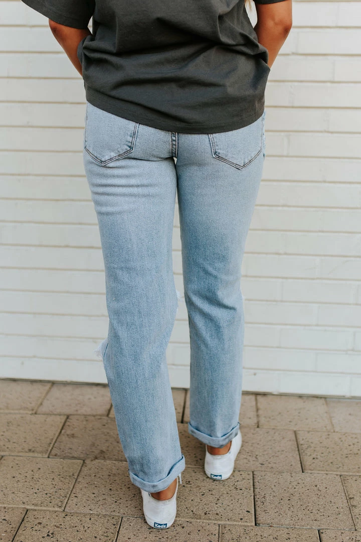 The perfect jean for all year round and a staple for your closet! The mom fit make them flattering and perfect to pair with anything! The distressed details give them an edgy feel that we just leave!