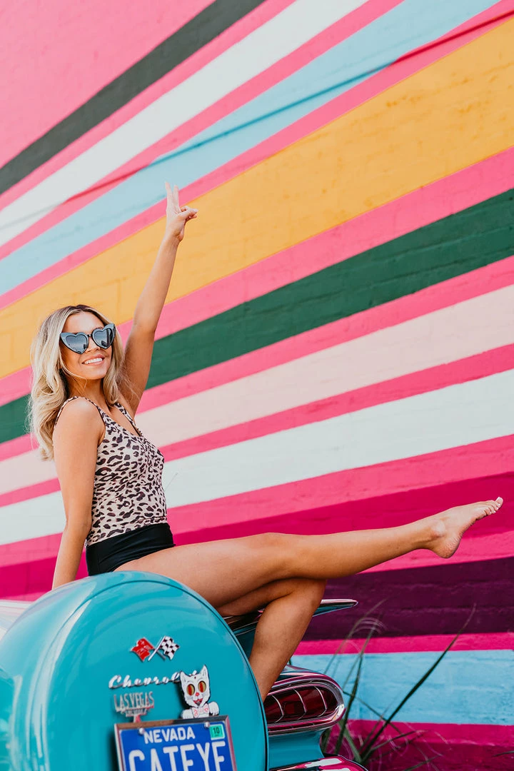 Paired with Pink Desert Vintage High Waist Swim Bottom in Black.